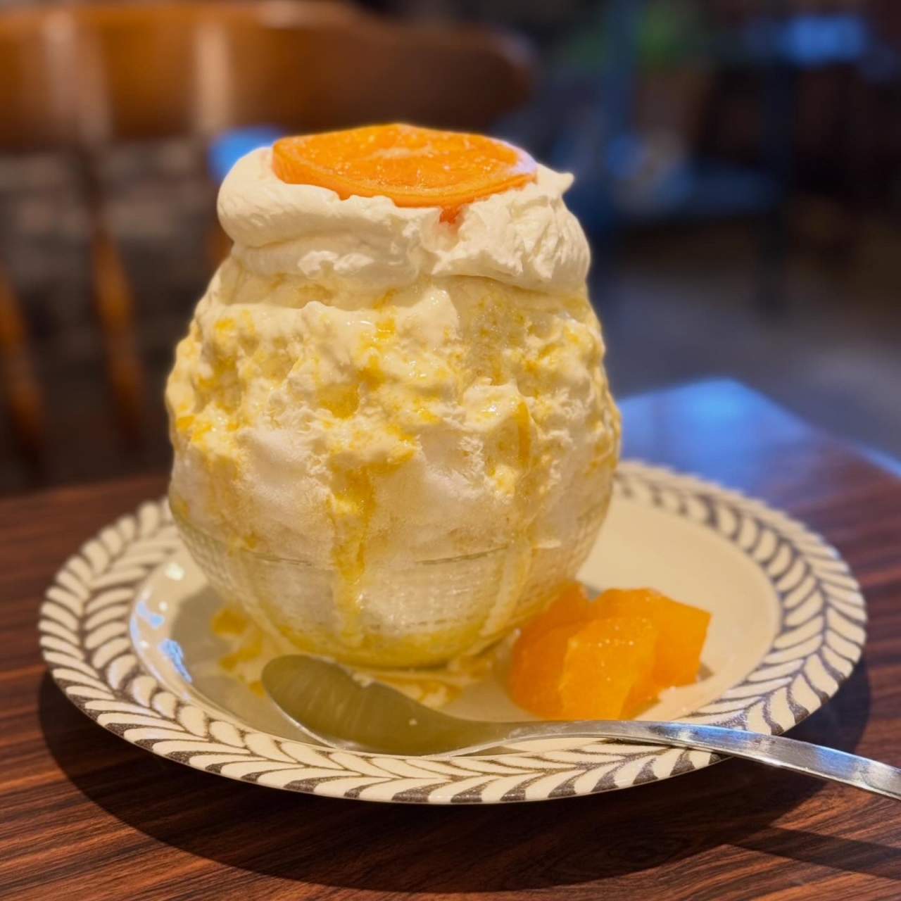 皆様こんばんはです。 4月に入ったな!と思えば1/3が過ぎようとしています。 こないだお正月じゃなかったっかな❓ そして、毎日眠たいし…くしゃみが止まらない! 春🌸が来るのは嬉しいけど、花粉症はマジヤダ‼️ そんなこんなで、久しぶりのかき氷部🍧🥄 紅まどんなのレアチーズ氷🍊 腹ぺこで行ったし、美味しくて5分くらいで食べ終わってしまった👍👍 お店の方も目を丸くしてビックリしてた😂😂 今が旬の柑橘のかき氷、行きたいお店いっぱいあるけど…仕事が忙しくてなかなか行けない😢😢 来週は奈良🦌🦌にかき氷部🍧🥄行きたいなぁ🤔🤔
