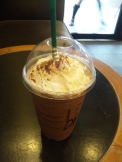 初! 大好きなスタバでアンケートに答えたら、『お好きなドリンクプレゼント』ということで 'ダークモカチップフラペチーノ'の一番大きいサイズを注文♪ かなりお得です♪ヽ(´▽`)/