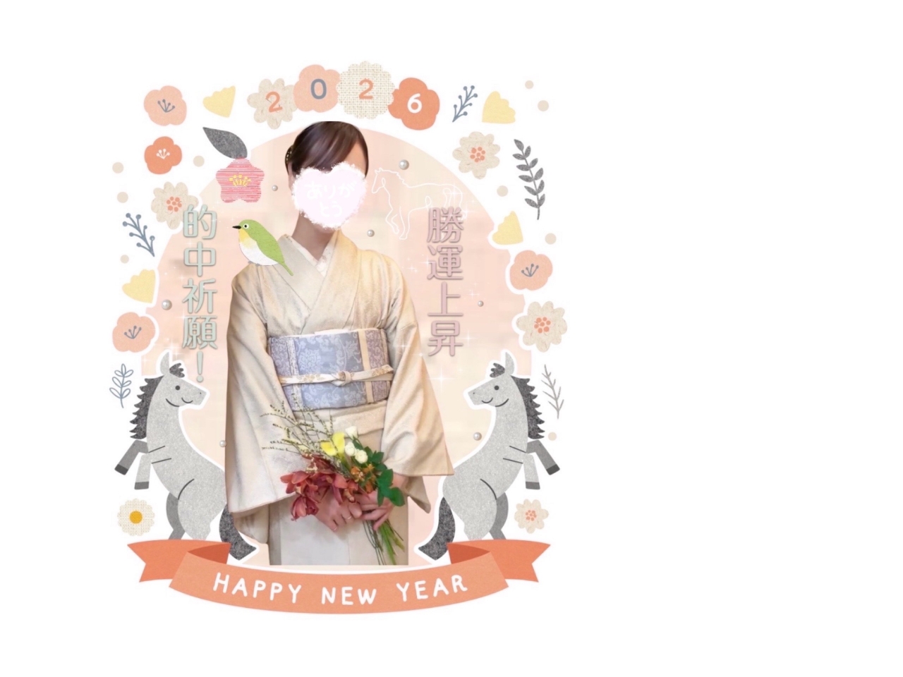 2026 年 ことしもどうぞ よろしくお願いいたします ㊗️ ウマ年ということで、 競馬御守り をイメージした 年賀状つくってみました🐴😳 勝負強い年にしたいという願いをこめて🙏🎯 ことしも 良いことたくさんありますように✨️ 久々のブログ更新✨️ 目を通していただき ありがとうございます💛 また更新しますねᝰ✍🏻 .まな.